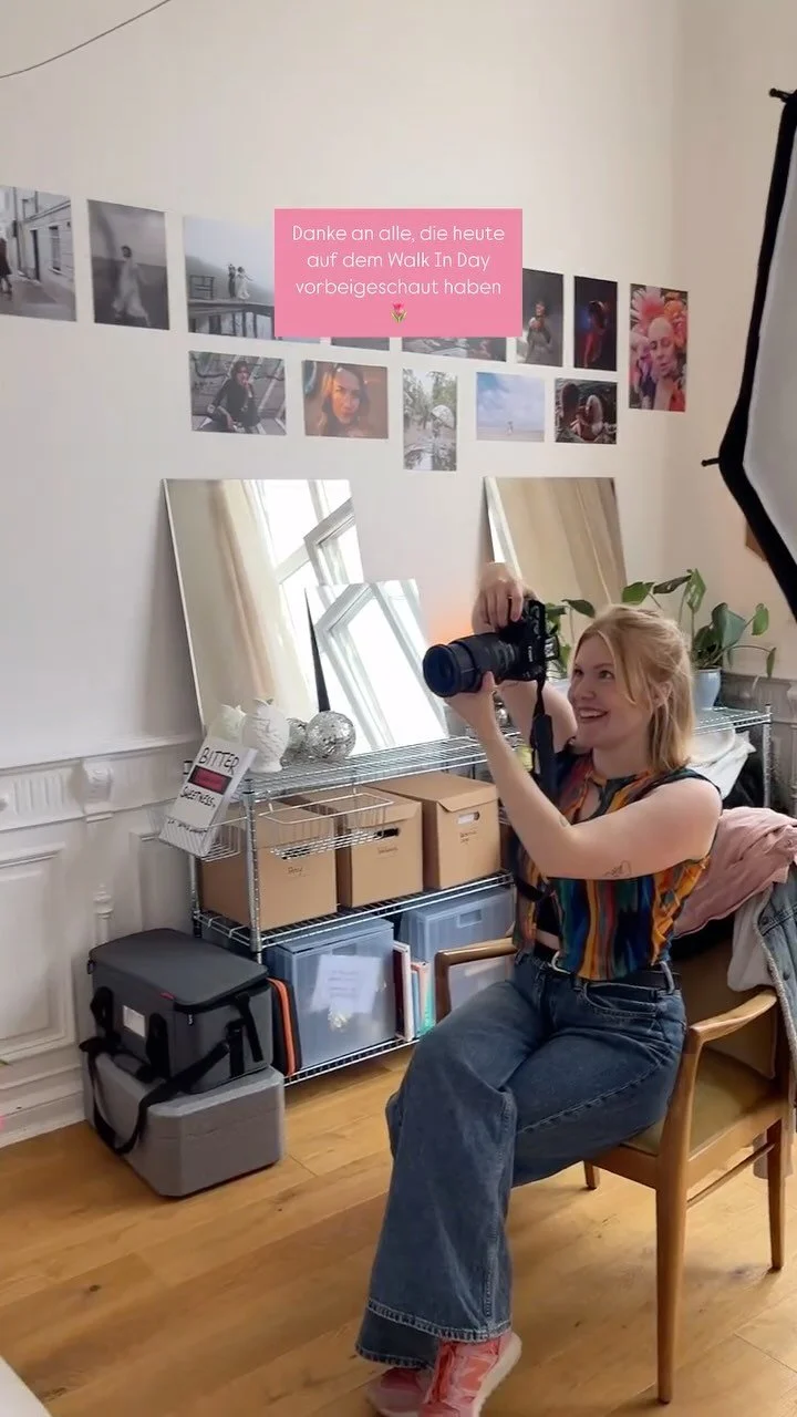 Immer auf der Jagd nach einer Geschichte, die eingefangen werden will. Shanice pendelt auf dem Fotograf*innen-Spektrum zwischen Spionin und Hypewoman: Unauffällig durch Menschenmengen schleichen, um ihr Lasso nach den besten Momenten auszuwerfen oder ihrem Gegenüber durch den inflationären Gebrauch von Komplimenten klarmachen, dass er*sie der*die Schönste im ganzen Land ist. Dabei entstehen Fotos, die in den Moment eintauchen.